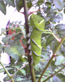 あとはコレ。庭にイモムシがいたんで。 | ↓見事なアゲハ(?)の幼虫 | |