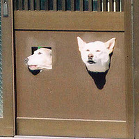 | しかも穴の形が微妙すぎて左の犬、顔出せてないし(笑)! | ||