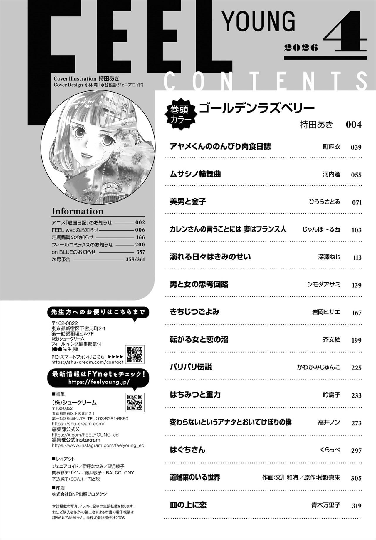 『フィール・ヤング』 がお近くの書店・コンビニにない場合には、左のamazon、楽天ブックス、セブンネットショッピング及び定期購読用のFujisanマガジンサービスなど、ネット書店のご利用が便利ですが、小社からの直接購入をご希望の場合、雑誌名と何月号かを明記の上、定価+送料を現金書留で以下にお送りください。送料は1冊の場合150円、2冊~3冊の場合450円です。それ以上は下記にお問い合わせください。